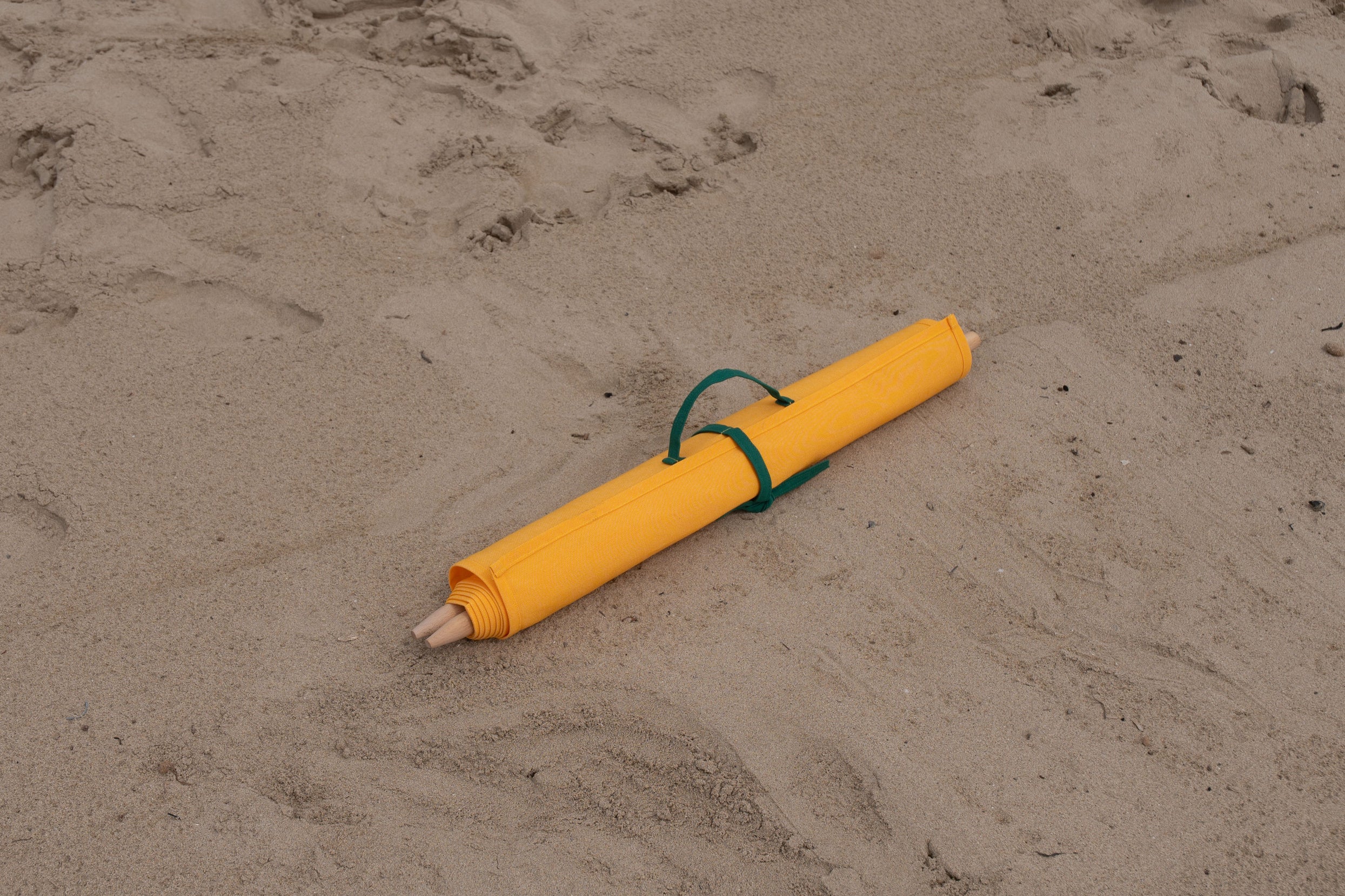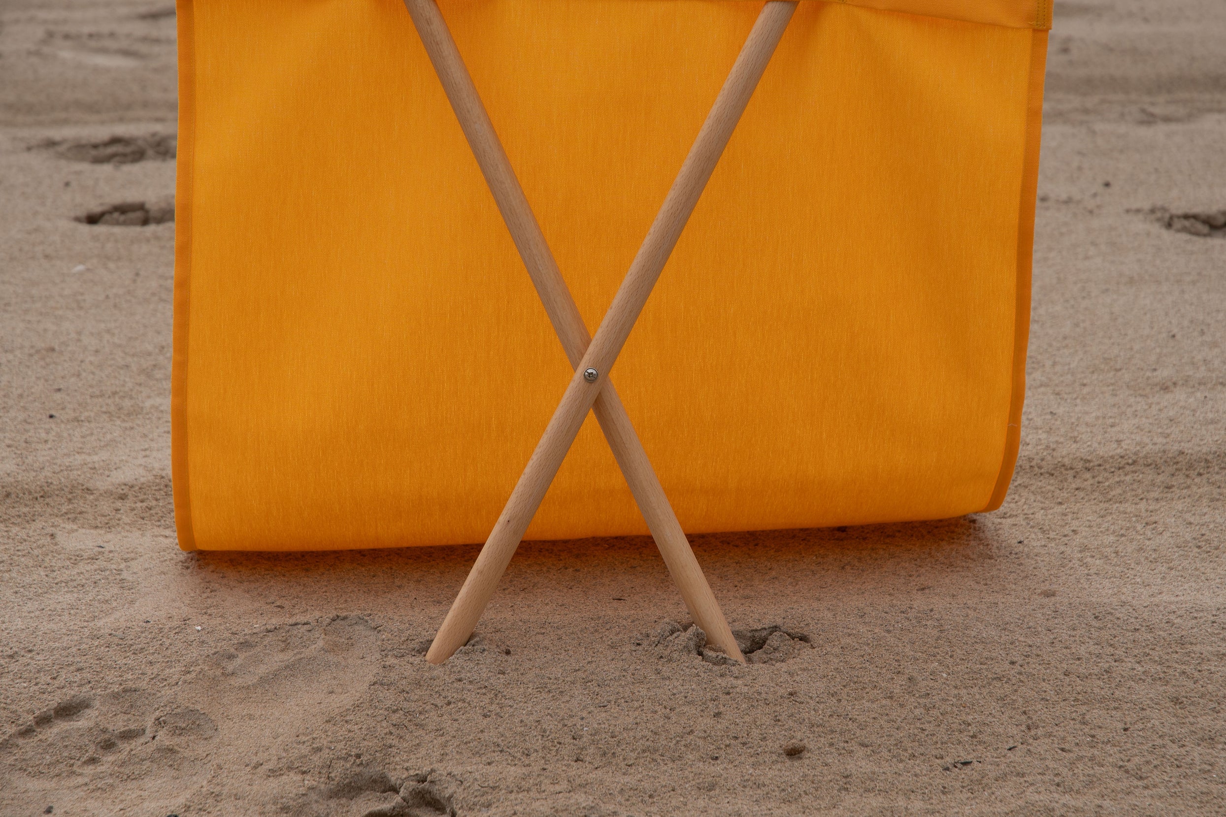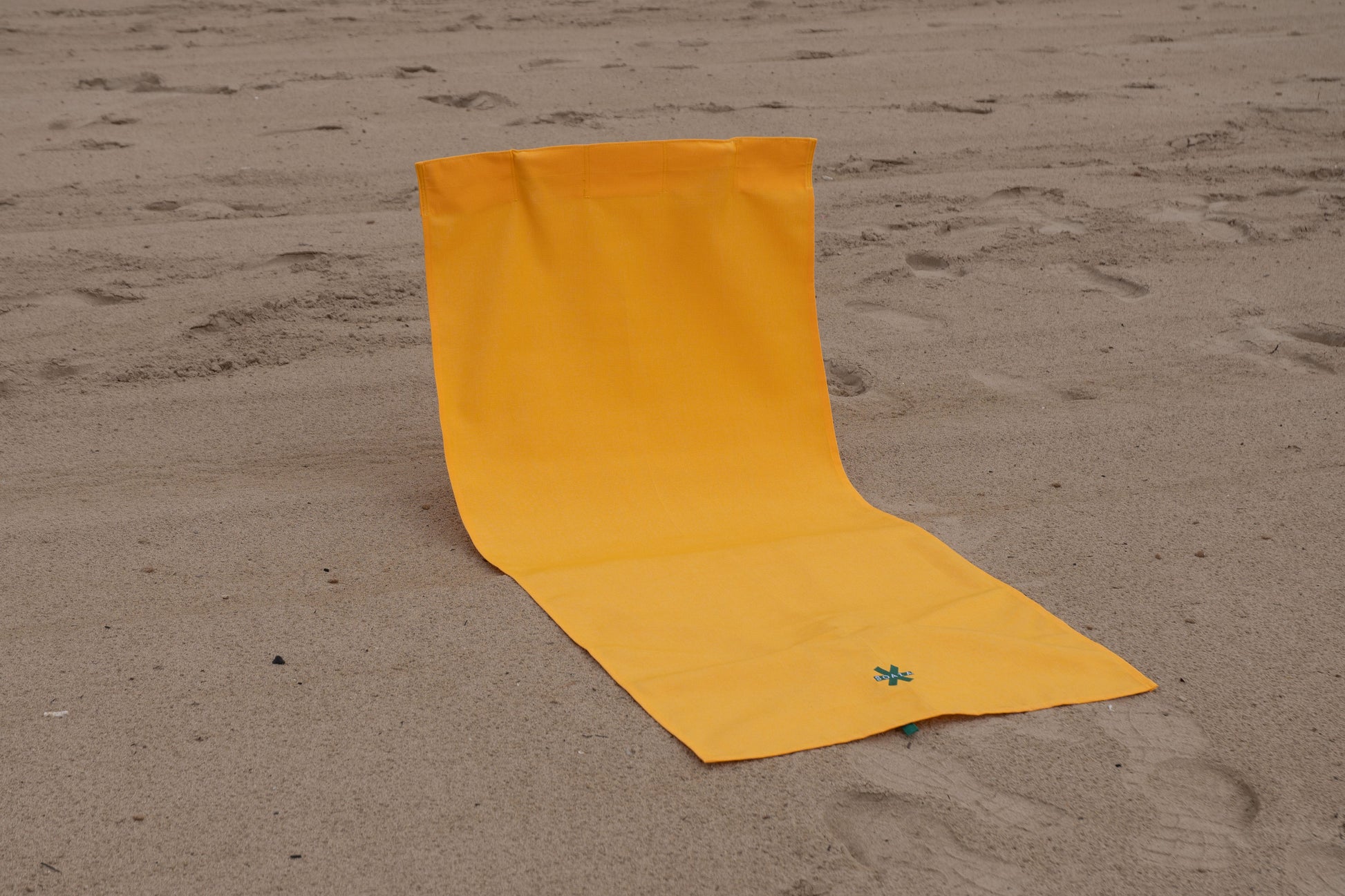 Silla toalla en amarillo. Tela resistente, ideal para tus escapadas, tanto de playa como de camping. Anti manchas de líquidos y con una tela super resistente.